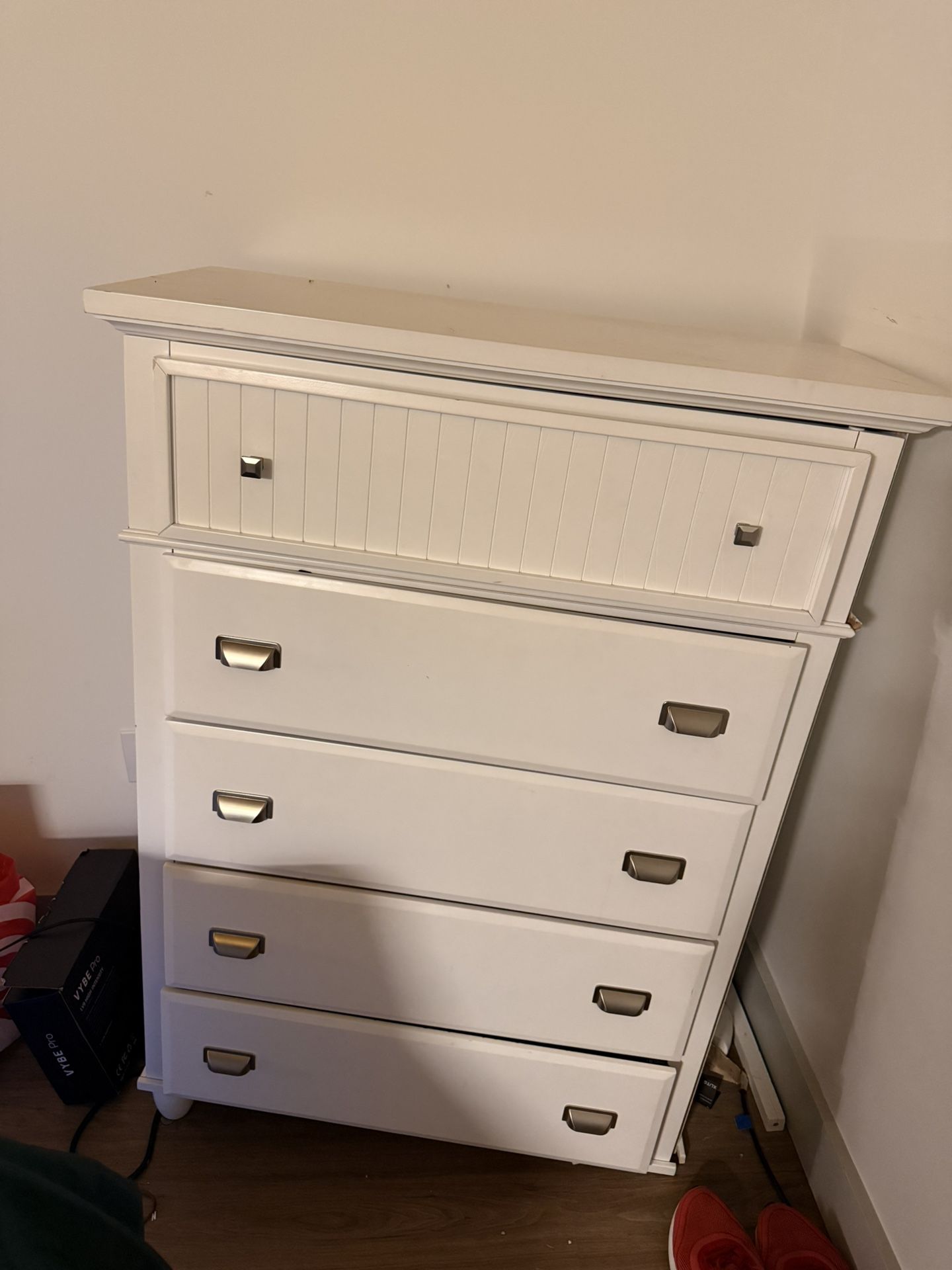 A little damaged but fixable The damage is that two legs on the dresser are off I have the legs they just need to be put back on
