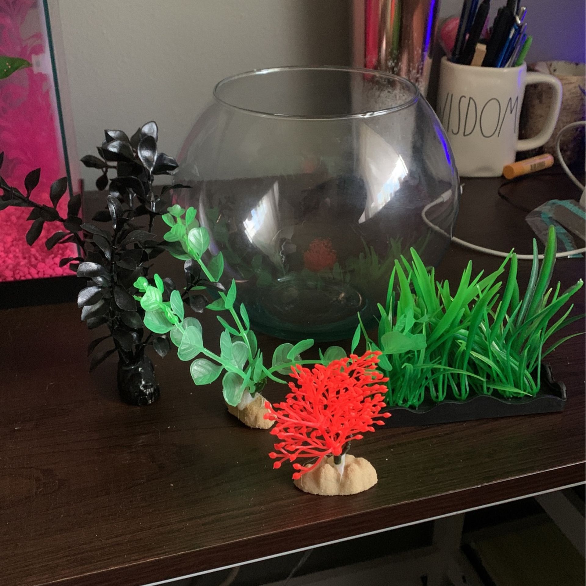 Selling my 1 gal fish bowl and some fake plants. $12 needing some money for college :) OBO