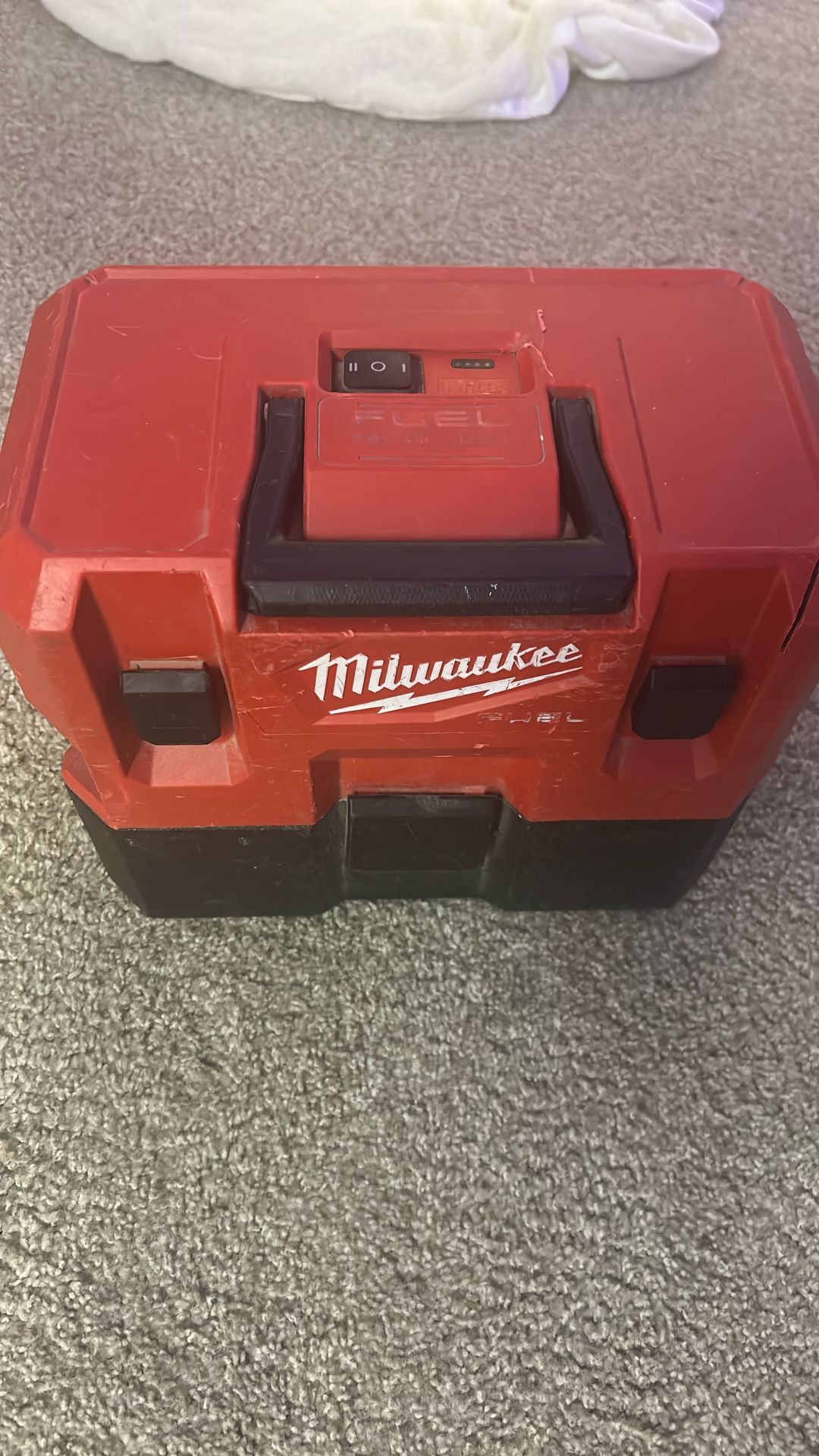 I recently upgraded my vacuum so this one is not needed. It’s perfect for having a vacuum in space saving. It’s nice and compact. It works perfectly for sawdust and small little screws. It does have a little sliced mark from when I was using a circular saw. Also, the hose needs to be replaced. My helper stepped on it so it has a rip in it. Battery and charger not included.
