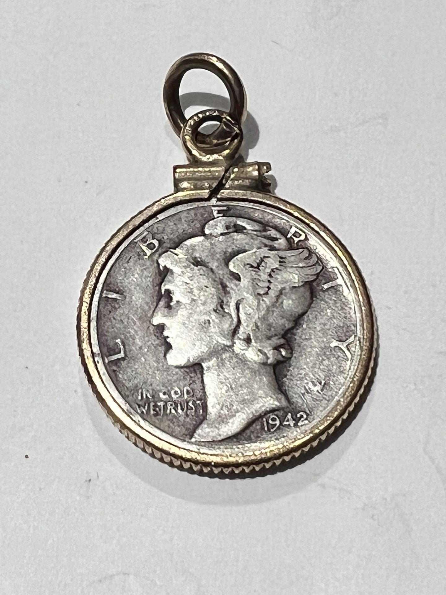 1942 MERCURY DIME COIN WITH 10k GOLD FILLED BEZEL