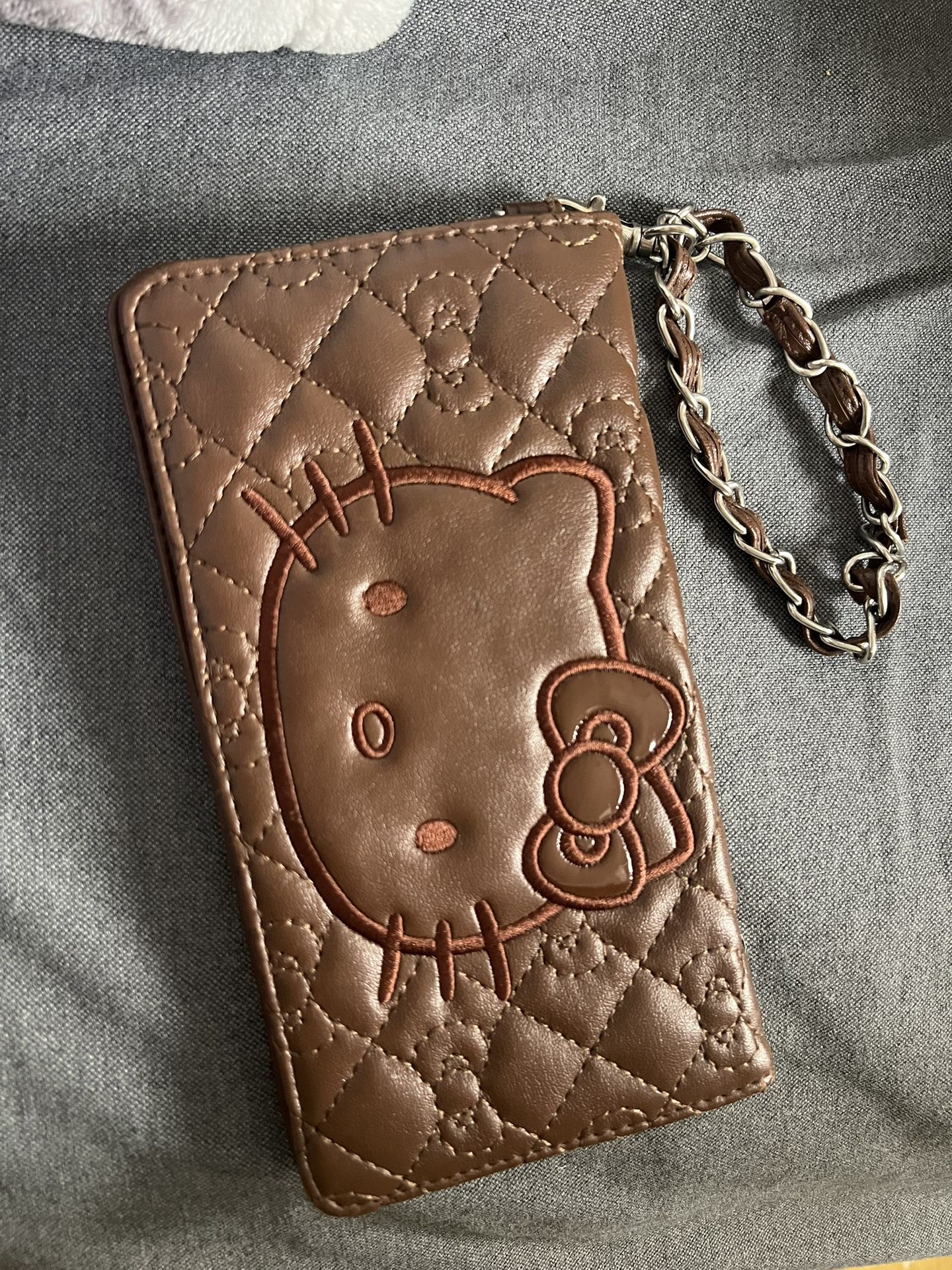 Step back into 2013 with this rare Hello Kitty quilted faux leather wallet in a sophisticated brown finish. Featuring Sanrio's signature embossed Hello Kitty face and quilted stitching. • Color: Rich brown with quilted detailing • Material: Faux leather exterior, soft and durable • Design: Embossed Hello Kitty face with bows Why You'll Love It: This wallet isn't just an accessory-it's a piece of Sanrio history. The brown quilted edition is harder to find than the red or pink versions, making it a standout for collectors and fans who want something unique. Whether you're adding to your Hello Kitty collection or looking for a stylish everyday wallet, this piece delivers both charm and practicality.