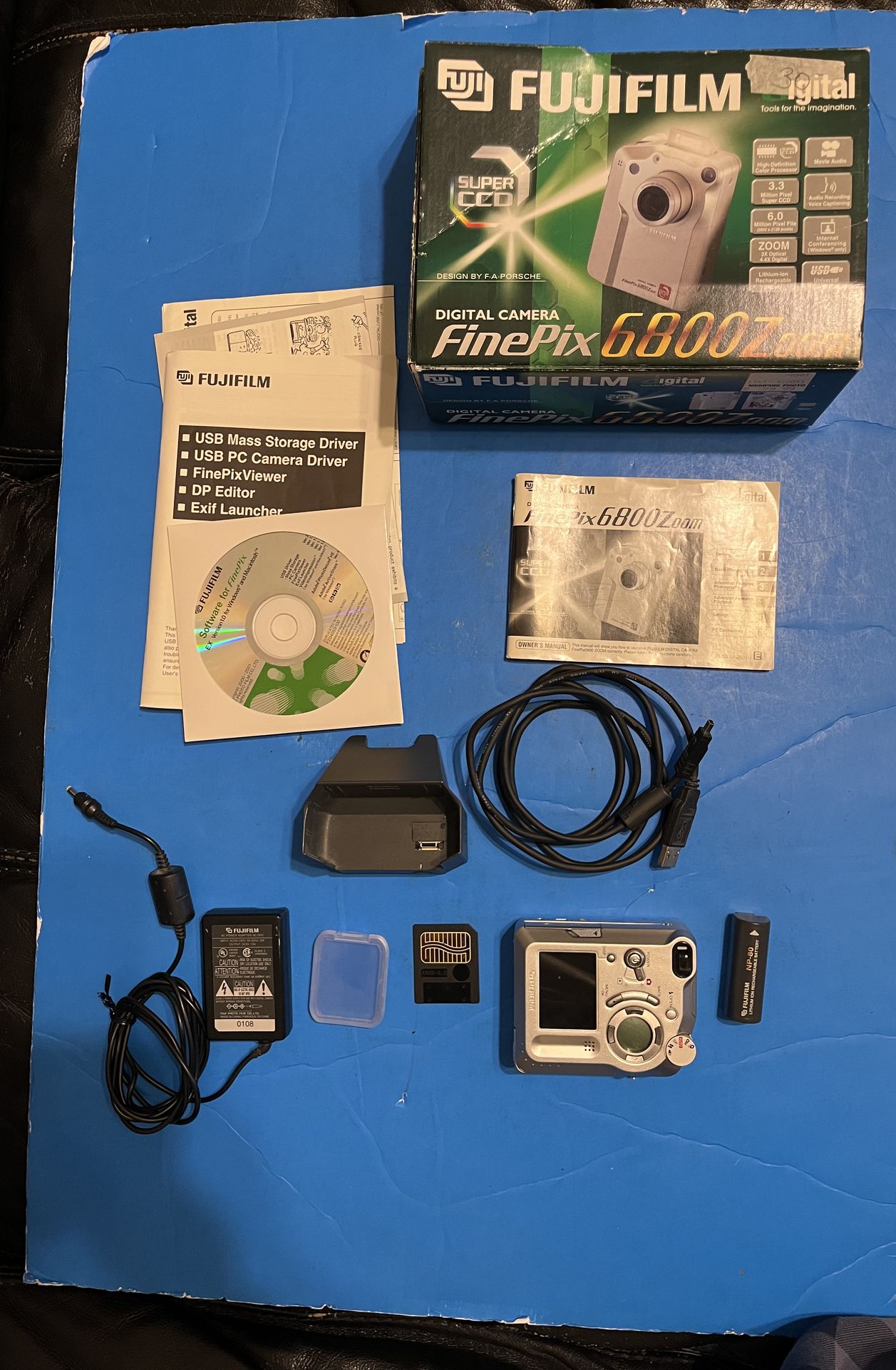Nice FujiFilm FinePix 6800 Zoom Camera w/Charger Base Battery Storage &manual