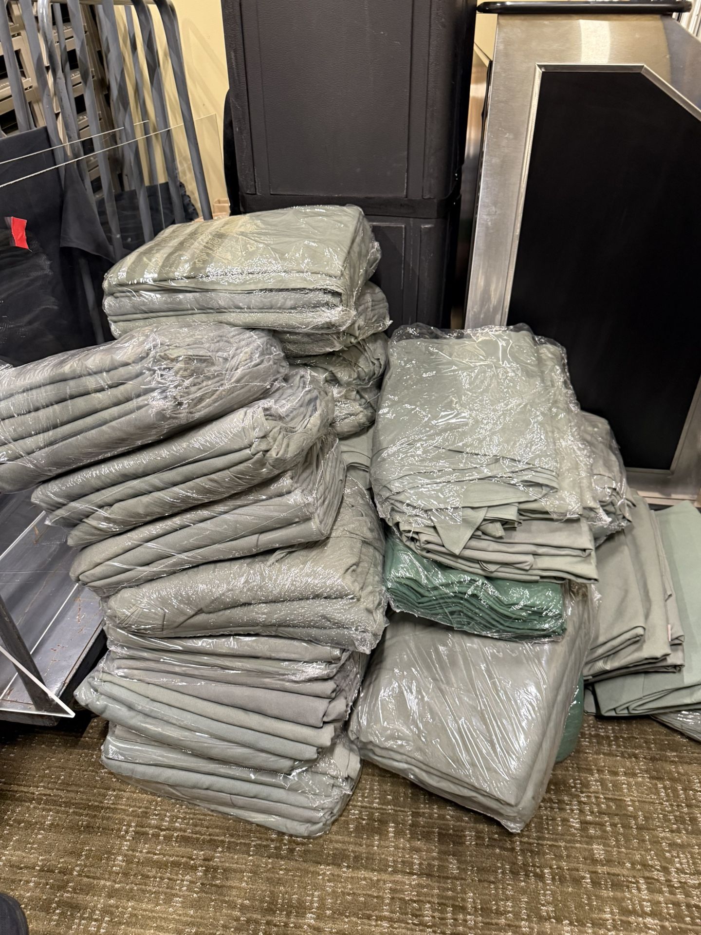New condition Sage Green Table linen fits 72inch table rounds. White and black linen available as well.
