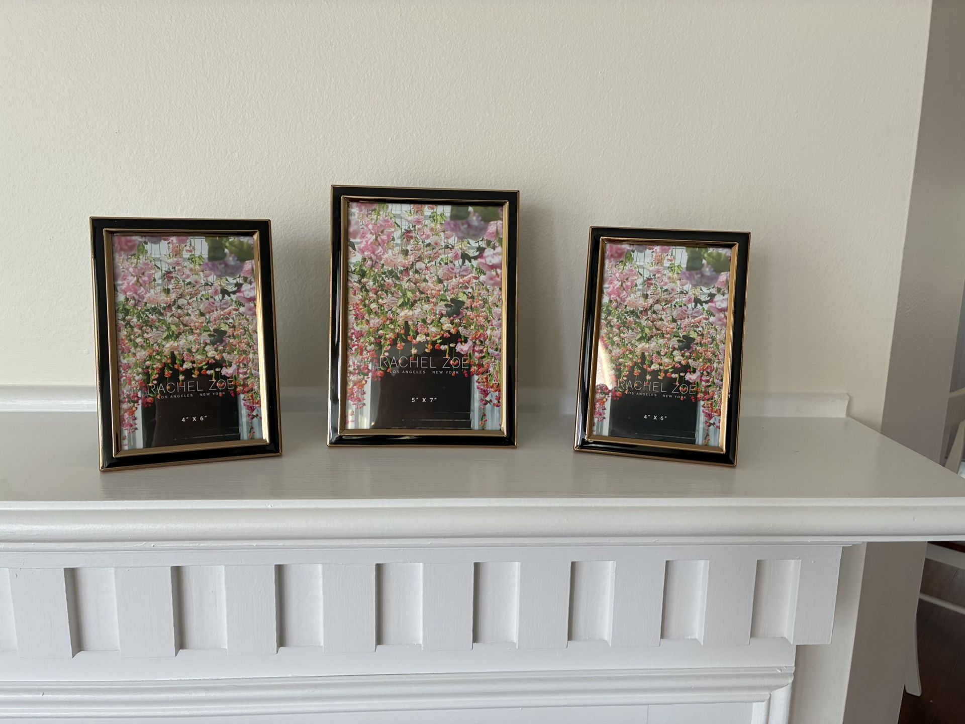 2 - black enamel frames 4x6 and 1 - black enamel frame 5x7 in excellent condition.