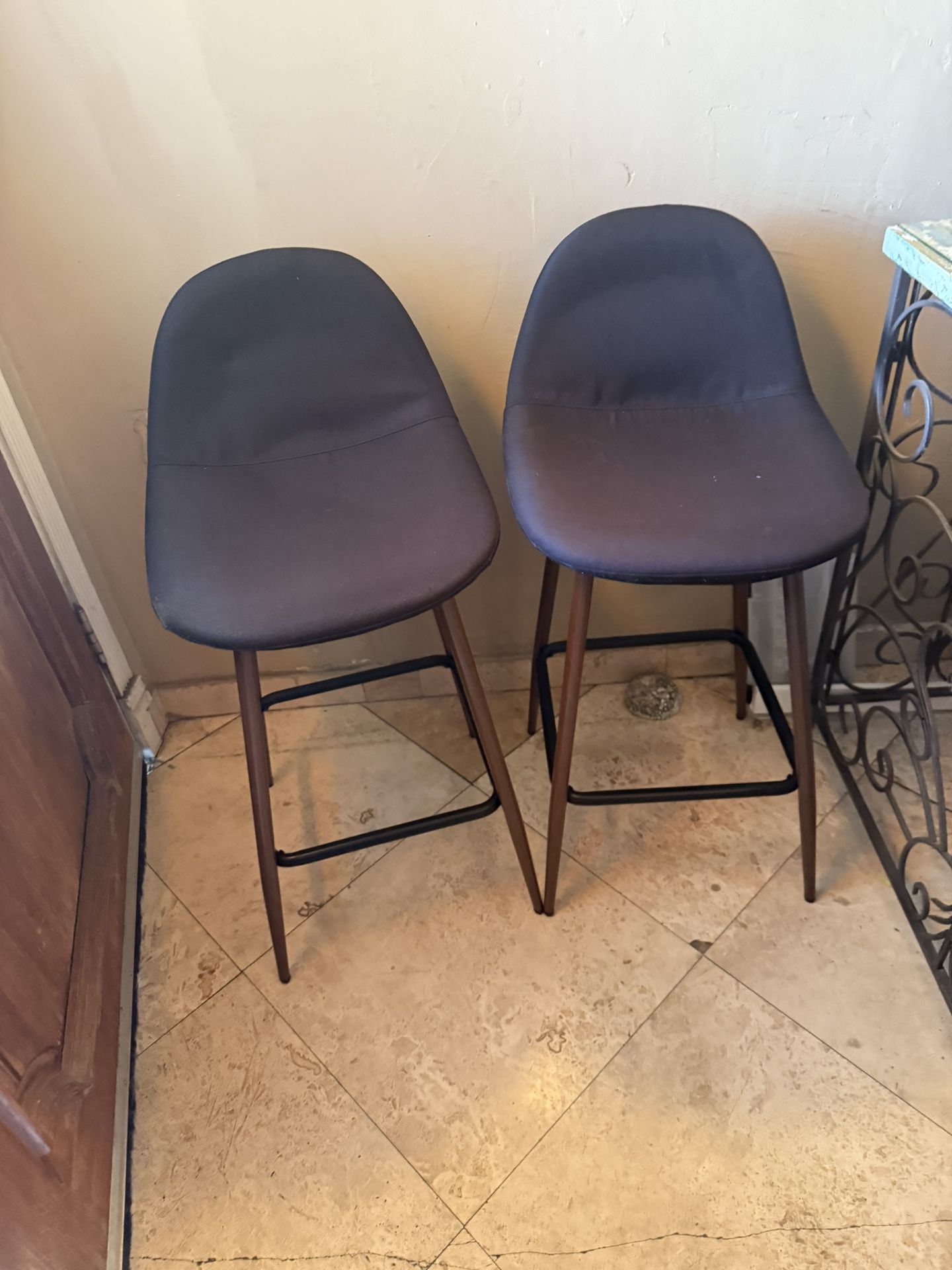2 chairsCounter Height Barstool color black Textile Material: 100% PolyesteSturdy metal legs with wood look finish, Measurements in the last photo good condition Serious buyers please City Lynwood ca Hablo español No delivery No holds 2 sillas de bar alto de 2 sillas, color negro. Material textil: 100 % poliéster. Patas de metal resistentes con acabado imitación madera. Medidas en la última foto. Compradores serios, por favor. City Lynwood, CA. Hablo español.