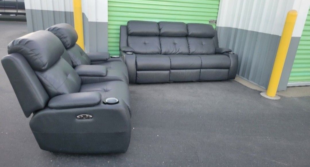 Selling my black leather sofa and loveseat electric recliners. No rips or scratches basically brand new bought from RC Wiley less than 7 months ago. Power recliners motors work smoothly headrest also reclines. Has usb and plug power stations on each side. Asking for $1,300 or best offer. Paid almost 3k for these. Will help deliver for free π