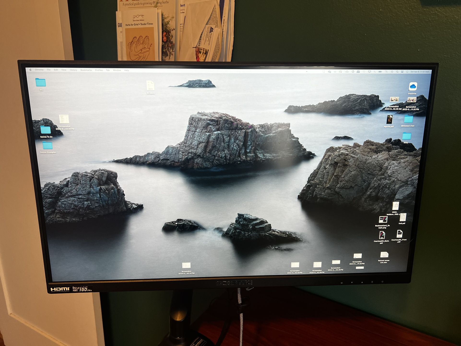 Sceptre E275B-QPT168 27" LED Monitor 2560 x 1440 Quad HD Resolution Vivid IPS Panel Up to 165Hz Refresh Rate AMD FreeSync Premium™ Supported DisplayPort x 2 & HDMI x 2 1 headphone port Built in speakers No table stand-just the monitor arm that latches onto a table. This monitor is $252 new ***There is a minor imperfection in the screen where on black or very dark backgrounds you can a couple small pink smudges near the upper middle. See photos. This does not show up on lighter backgrounds