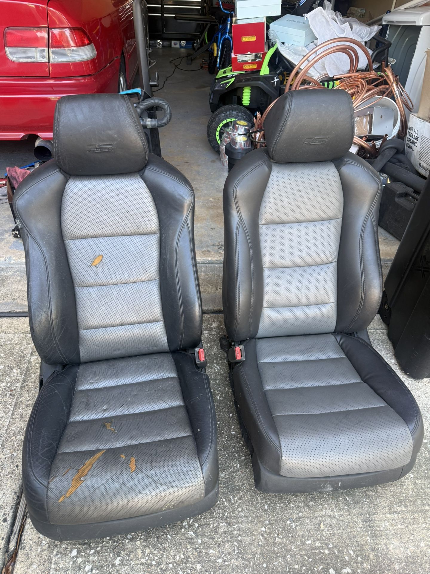 OEM front seats from a 2008 Acura TL Type-S. • Driver seat has been reupholstered — no tears, no rips • Passenger seat is original leather with some wear/tears • Both seats fully functional • Great upgrade for base TL or replacement for worn Type-S seats • Tracks included $350 obo