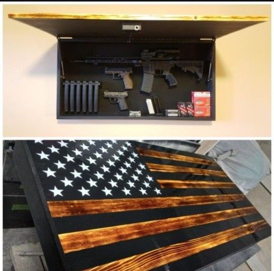 Handmade concealment flags or gun safe. Comes in small for handguns or large for AR or rifle. Comes with RFID electronic lock and magnets to mount weapons. Pick your size and pick your american flag style. Message me today