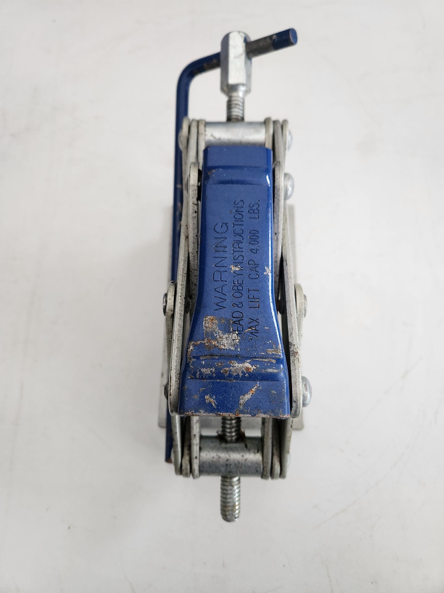 This item is a 2-ton capacity mechanical scissor jack used for lifting vehicles. Capacity: It can lift up to 4,000 lbs (2 tons). Safety Warning: The device warns to check for load obstructions as they may affect lifting capacity. Usage: Designed to be portable and compact for emergency tire changes. Works great! Please see all other available listings!