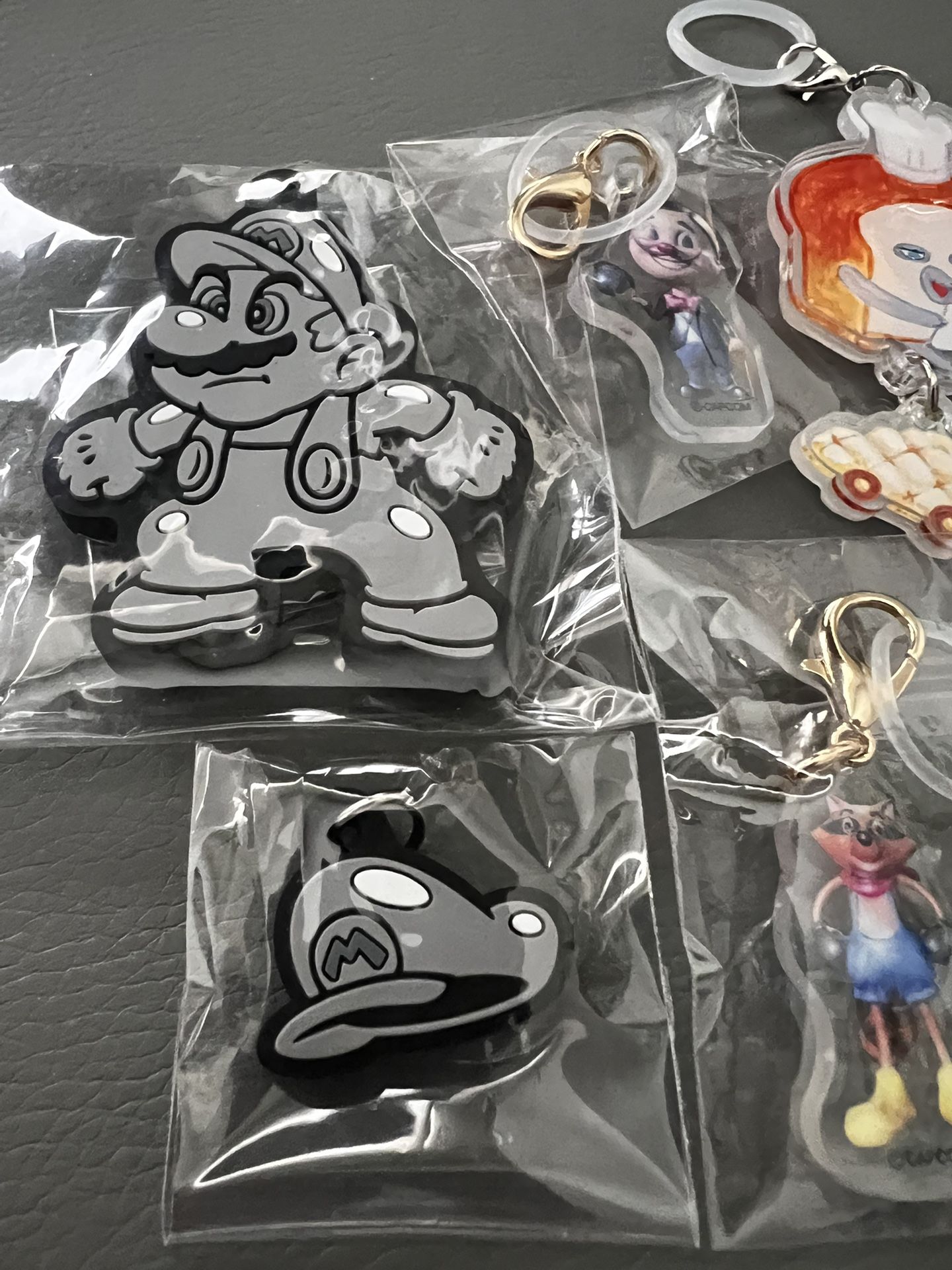 Series of keychains and pieces that can be added to keychains or hung on backpacks or bags. All new condition.