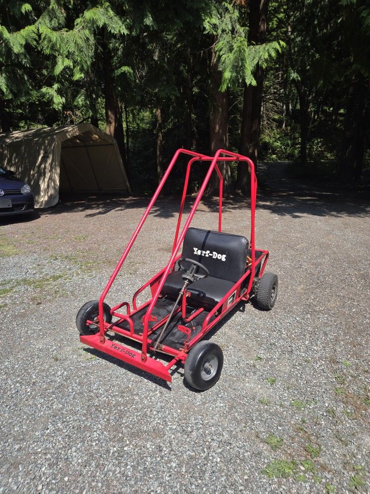 This is my old yerf dog frame that is fully original just restored. I had a 72v power train in it. Doesn't come with the motor or battery or controller. Comes with a mechanical foot pedal to electric converter, and volt meter. Has a fully metal welded motor mount for any electric motor (can be removed easily to put a gas engine back) PRICE IS NEGOTIABLE! Send me offers.