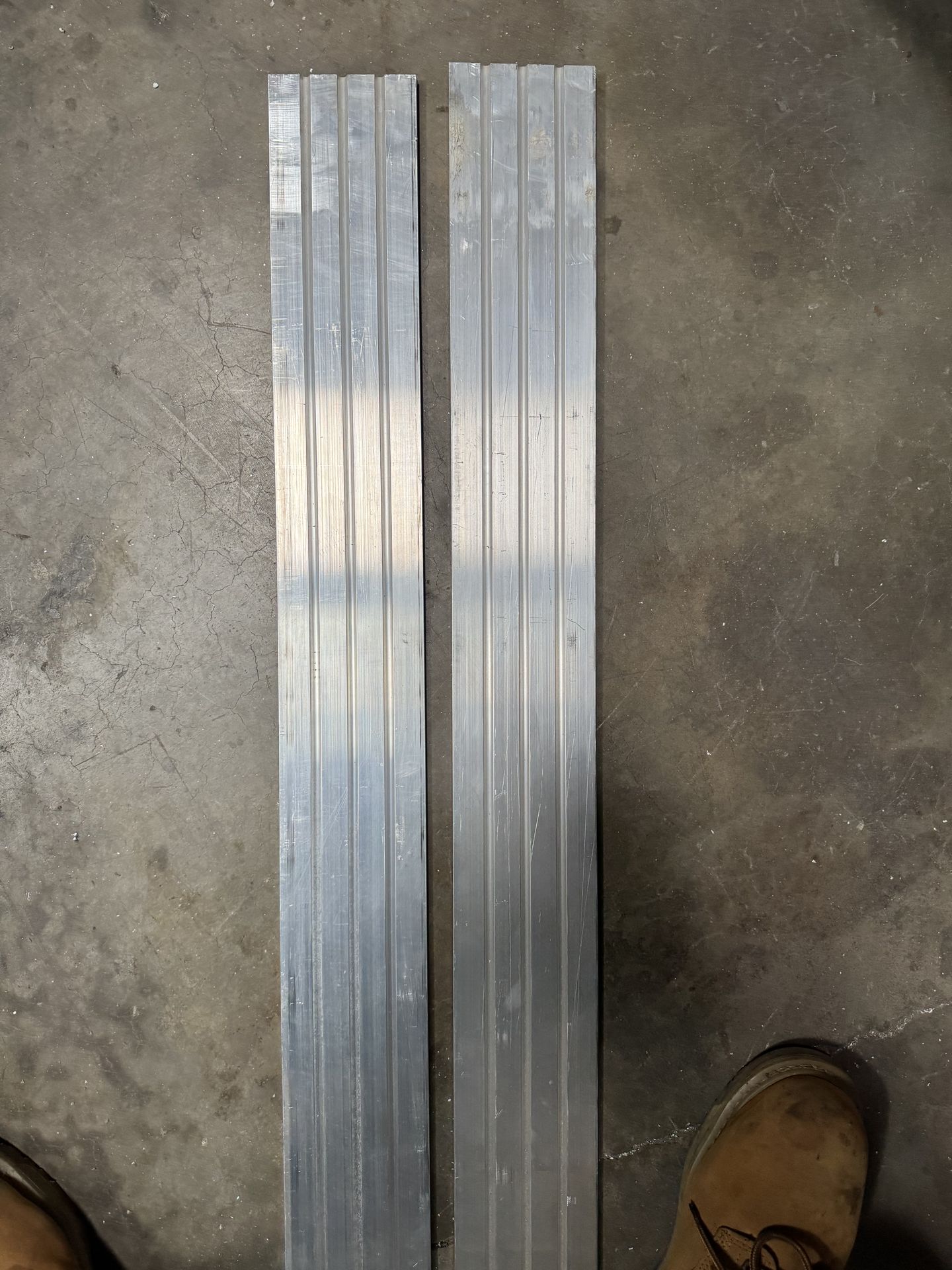 Selling: lengths of 4-inch wide aluminum planking. • Specs: 10 feet long, 0.25" thickness. • Profile: Ribbed top surface. • Material: High-grade architectural/industrial aluminum. Clean, no major bends. Perfect for decking, non-slip walkways, or fabrication projects. Pick up in 85301 75$ each Cash only.