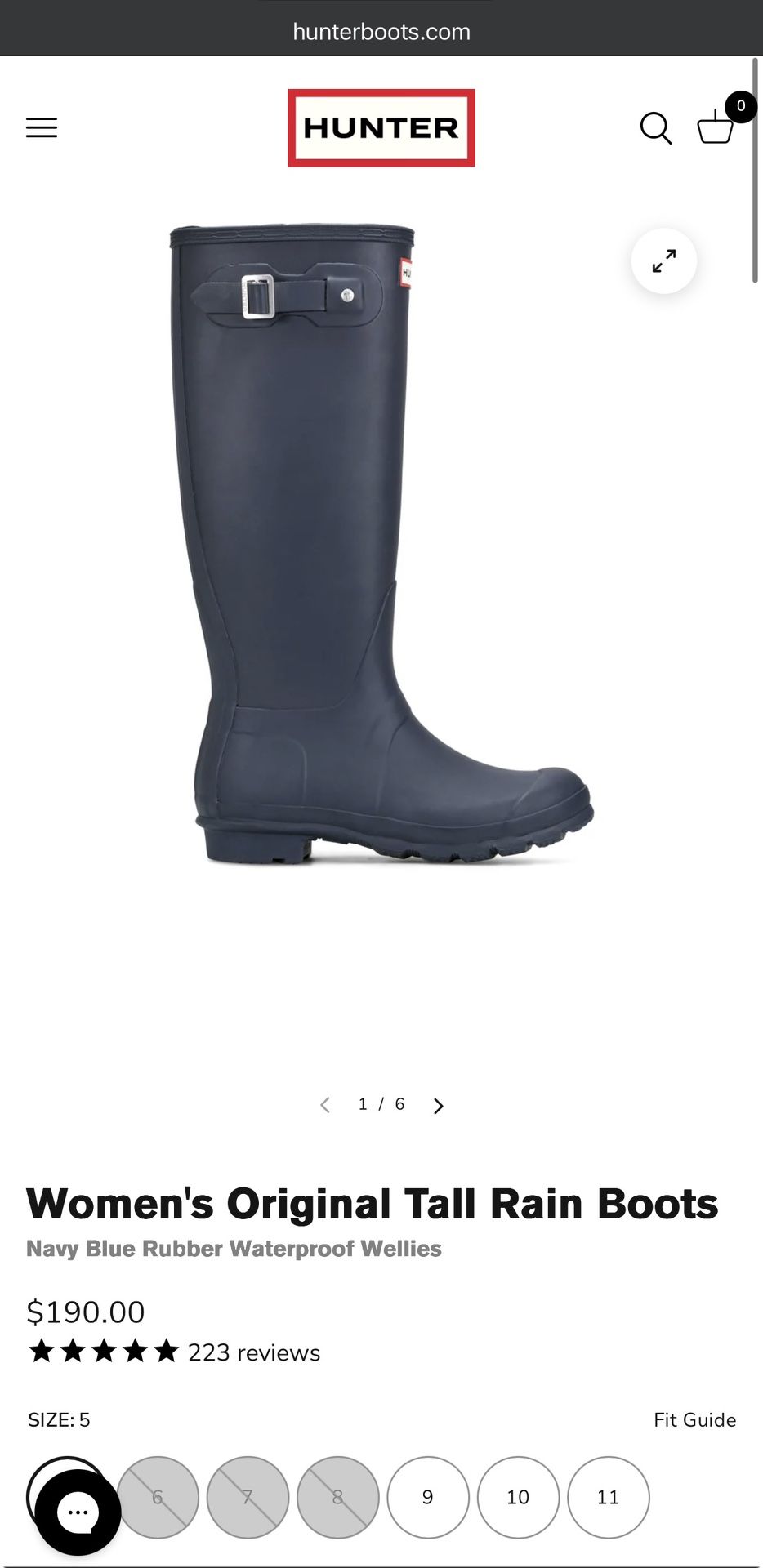 New Hunter Women's Original Tall Rain Boots Navy Blue Rubber Size 8