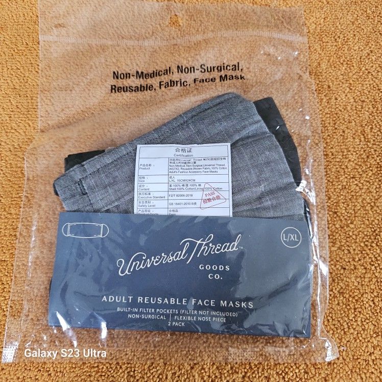 NON MEDICAL NON SURGICAL WASHABLE & REUSABLE FILTER POCKETS PLUSH ELASTIC EAR STRAPS 100% COTTON BLACK & GRAY L/XL BUENA PARK CIVIC CENTER 6650 BEACH BLVD & PINCHOT CIR NEAR 5 FWY