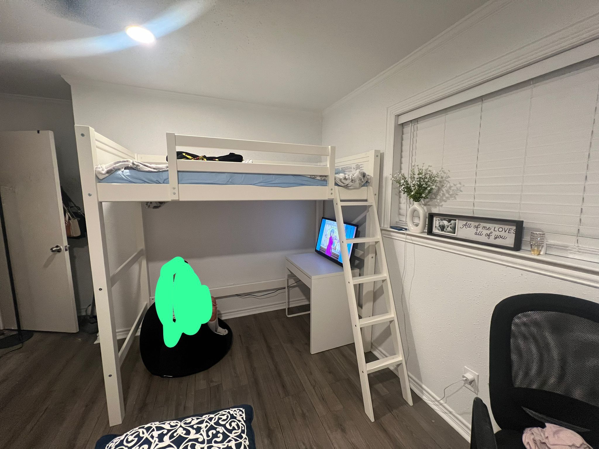 Only used about 4 times. Son didn't end up liking the height of it. ONLY bunk bed. Mattress not included, desk under not included. Disassembly done-ready for pick up. Ladder can be adjusted to preferred side.