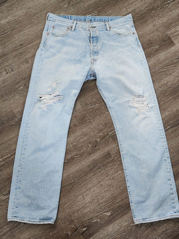 Pick up location 94th Ave and McDowell Cash sale Stylish men's Levi's jeans. Light wash denim with cool ripped knees. Has a classic button fly closure. Super comfy pair for everyday wear.
