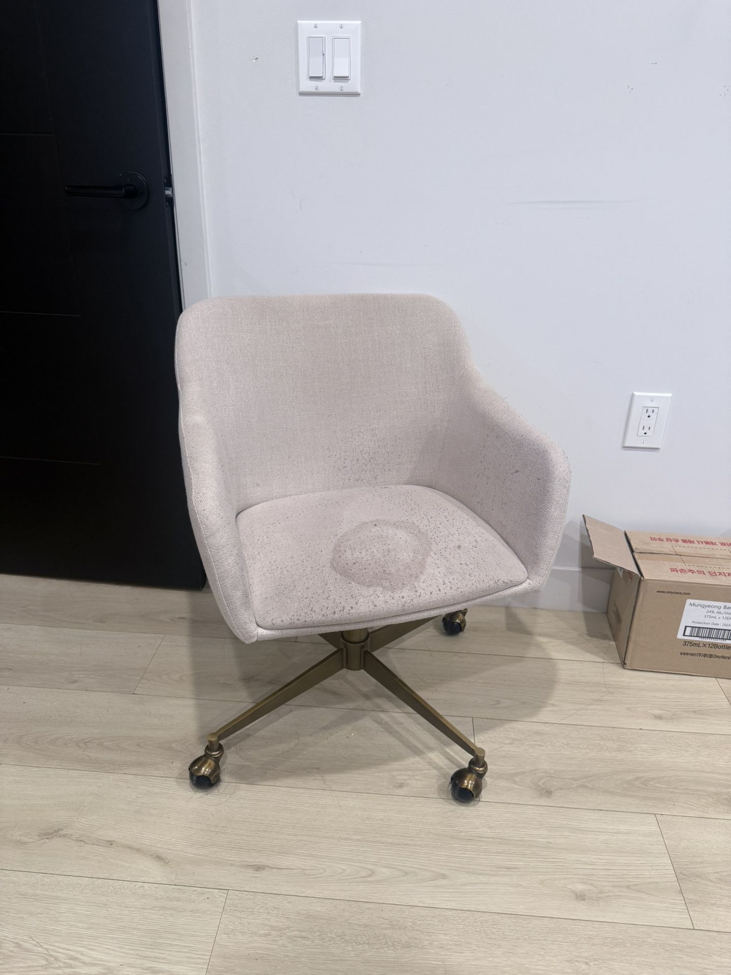 Has a stain from me trying to clean a juice stain 😠if you know how to clean upholstery then im sure it wont be an issue to get it out