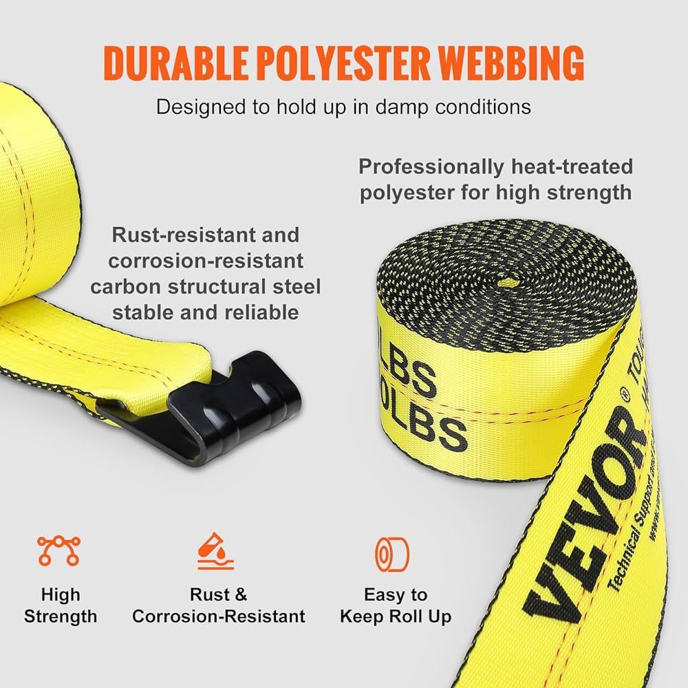 VEVOR Truck Straps, 4" x30' Heavy Duty Tie Down w/Flat Hooks 18,000lbs Break Strength, WLL# 6000lbs, Cargo Straps tie Down for Flatbeds, Trucks, Trailers, Farms, Rescues, Tree Saver, Yellow(6 Pack)