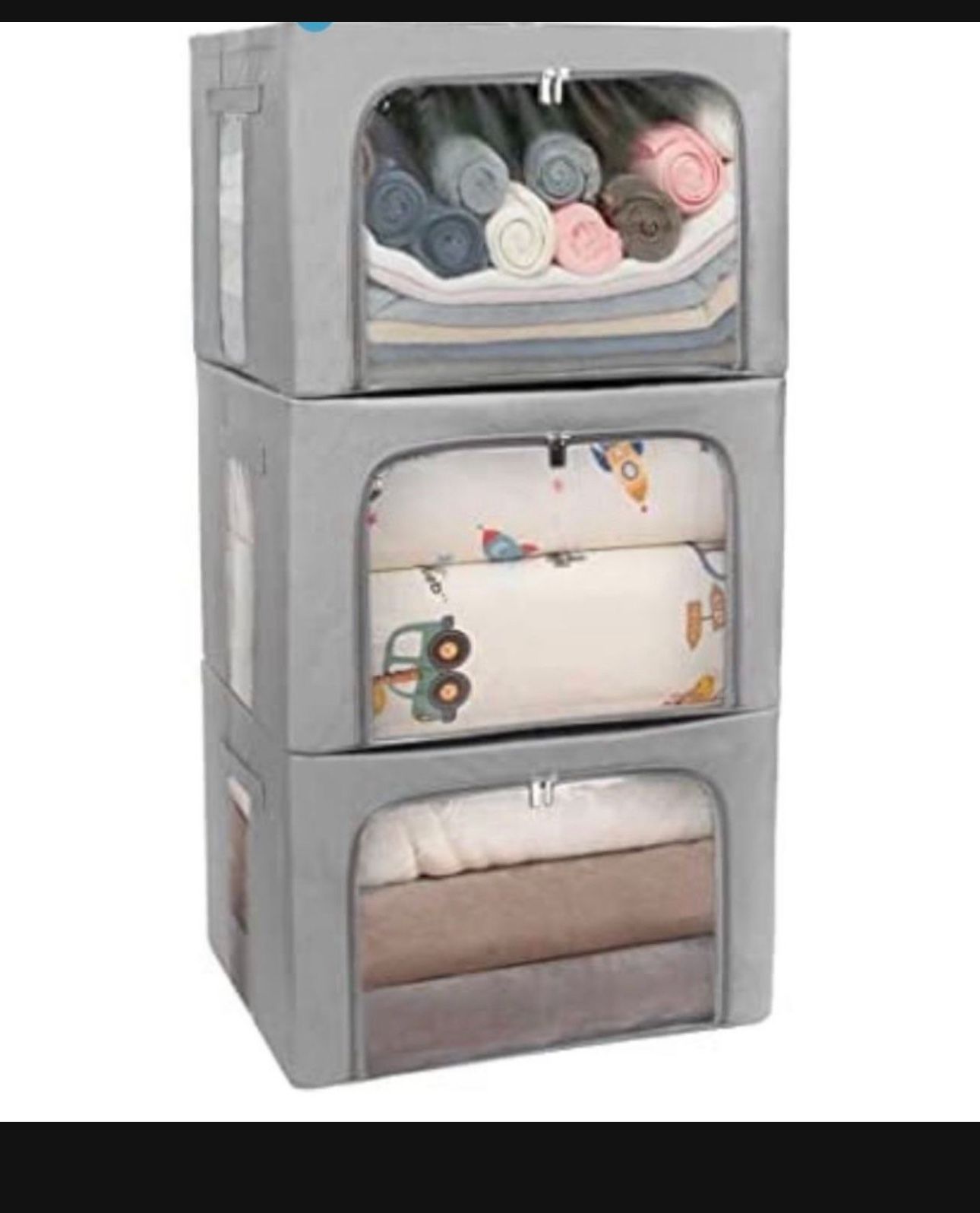 Stackable Clothes Storage Box for Clothing Gadgets,Steel Frame Storage Bins for Bedding Blankets Toys Gift,Foldable Oxford Fabric Closet Organizer Bag