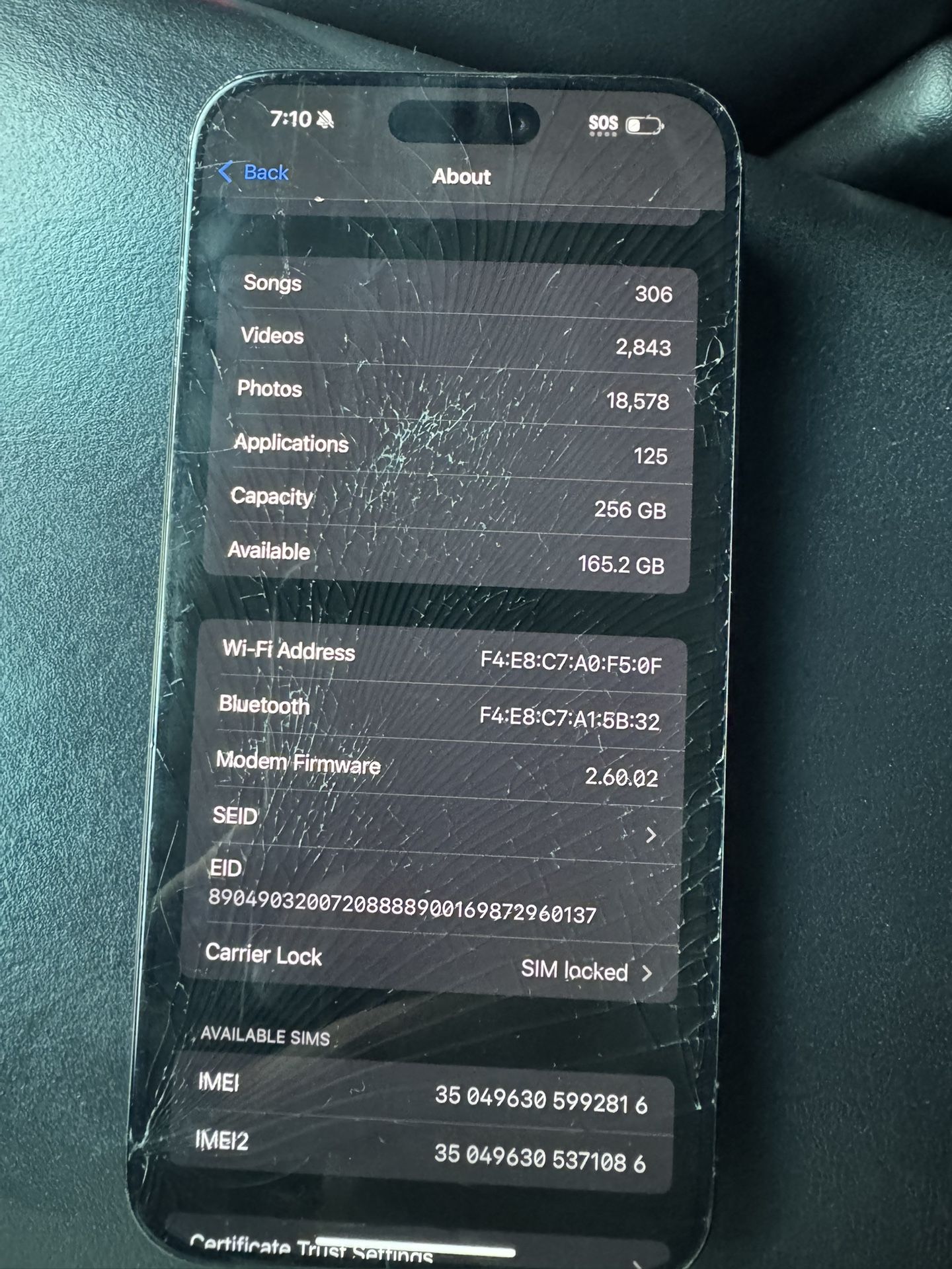 Locked to ATT Cracked front and back Works fine just need to replace screen