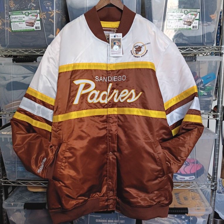San Diego Padres Mitchell & Ness Big & Tall Coaches Satin Full-Snap Jacket Brown/Gold