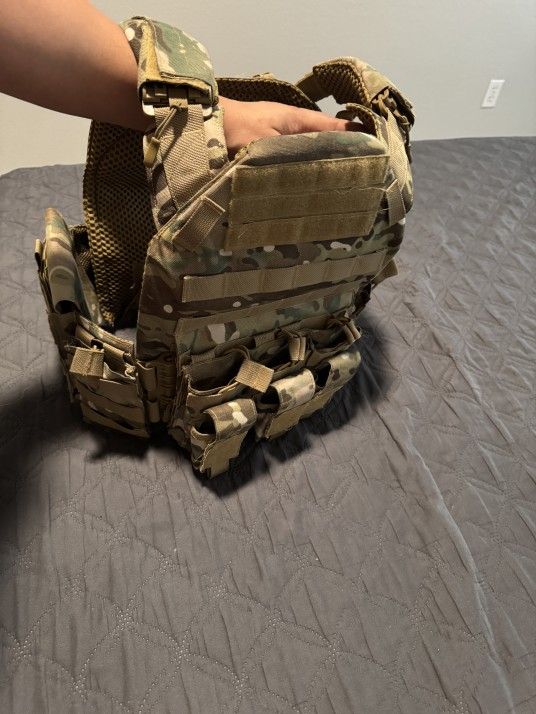 Camo vest plate carrier ( plates not included) Has optional side plate carrier