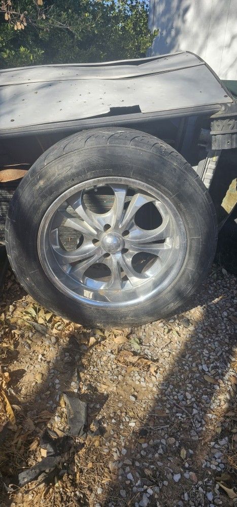 Full set wheels and tires. Tires are old but wheels are in good shape with no curb rash. The bolt pattern is 5/4.5 they came off a 98 grand cherokee. Asking $400