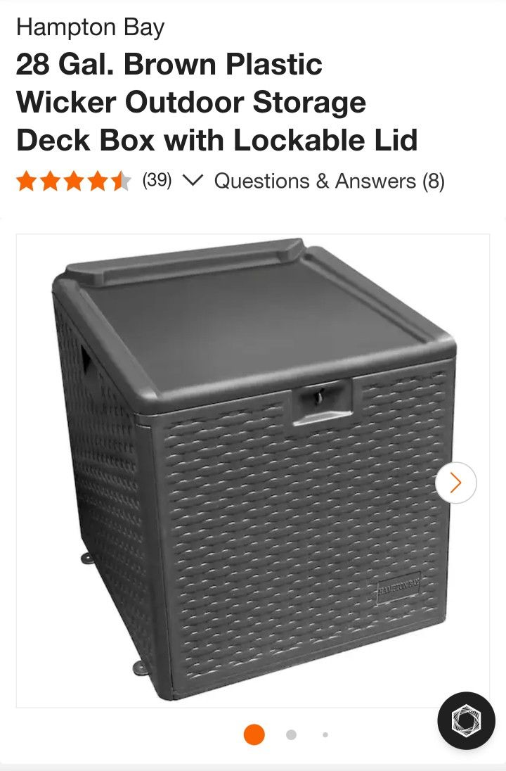 Hampton Bay 28 Gal. Brown Plastic Wicker Outdoor Storage Deck Box with Lockable Lid asking $35 obo brand new have different sizes
