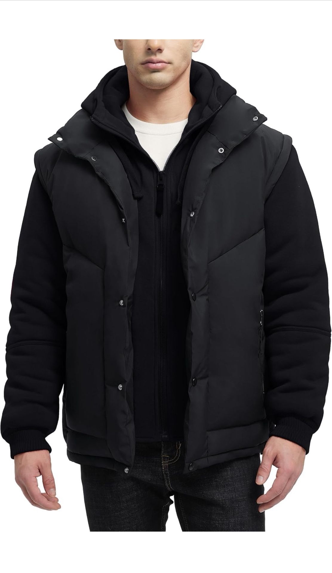 type Cotton+Polyester Care instructions Dry Clean Only Origin Imported About this item 【Fake two piece design】These winter coats for men body is made of waterproof and windproof fabric; the sleeves are made of polyester-cotton fabric. The patchwork design of different fabrics adds a unique visual effect to the basic clothes. 【Waterproof & Windproof】These mens winter coats with front full zip designdurable water Resistant shell fabric, hood collar,ribbed cuff and bottom keeps you warm and comfortable in cold weather. 【Useful Pockets】These winter jackets for men have 2 side pockets and 1 inner hidden pocket to keep personal stuff safe. 【Excellent Thermal Insulation】These mens winter Jackets provides excellent warmth.Sporting a thick and bulky coat is not always the best choice, as this can weigh you down and limit your movements. This winter jackets is all about embracing you with warmth without bogging down your mobility. 【OCCASION】These mens coat perfect for casual daily wear, work, travelling, hiking, camping, skiing, snowboarding and other outdoor sports activities in winter or cold weather.