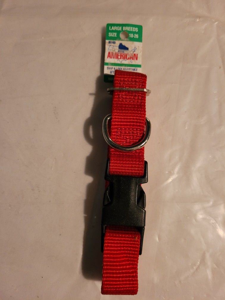 Dog Collar size 18-26, red nylon. Brand new still with tag attached. See picture for information. New Bx72