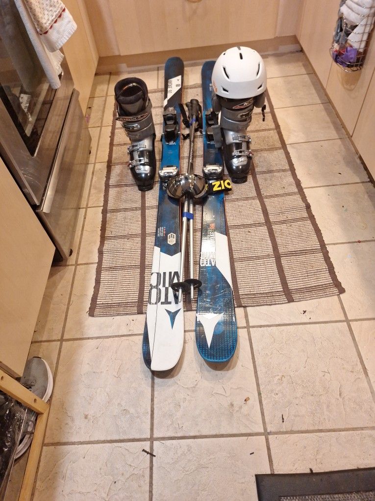 184cm Atomic Skis Nordica Boots 30.5 Spy Helmet, Gogles And Poles