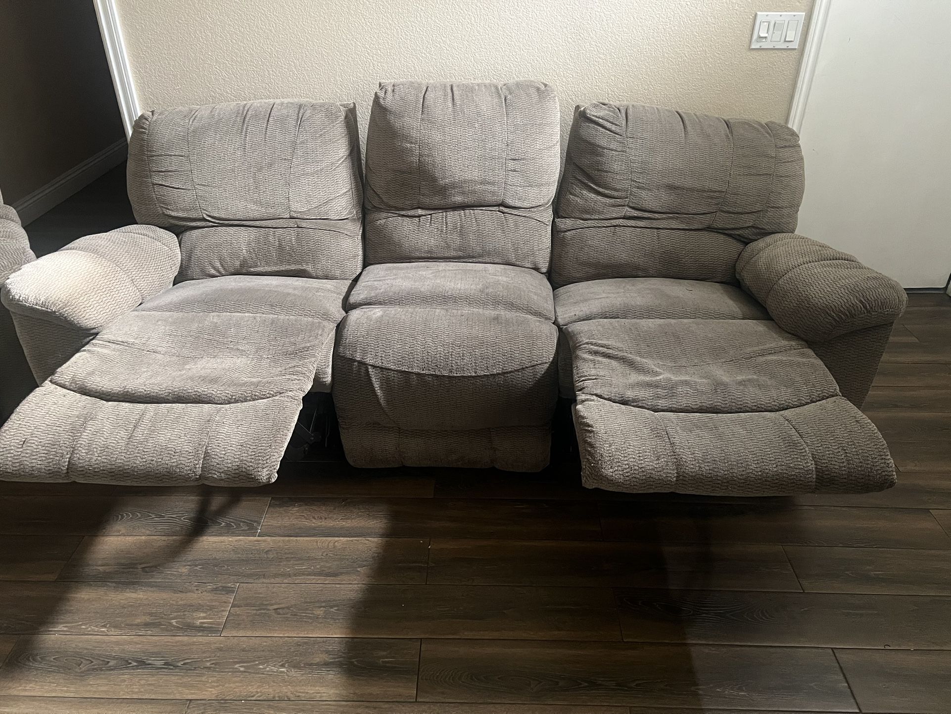 Furniture couch with two recliner sides and an individual recliner chair. Can be sold separately or as a set