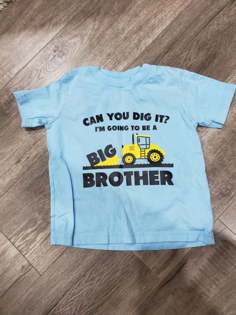 Boy 18-24month "going to be a big brother" Tshirt worn once was 16$ new. $5 ***xposted ***No Trades please *** Please see my other listing lots of baby items and baby boy clothes. or ask if you are specifically looking for something as have lots of things to post.