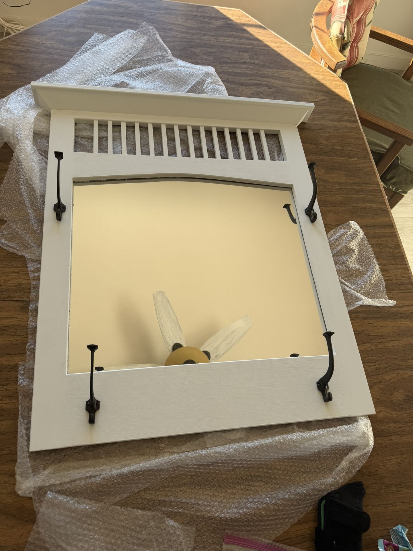 In great condition. Originally brown. Painted it white. Pick up in Spring Valley. Width 32 3/4"x Depth 4 1/2"x Height 36 1/4"