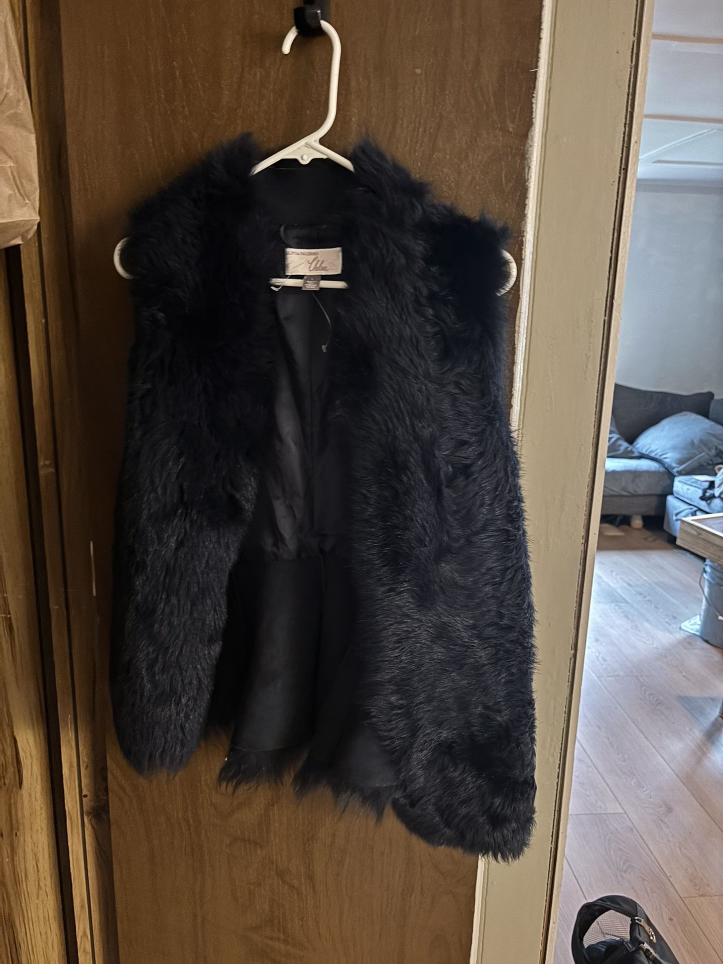 LOW PRICE MOVING- NWOT $990 + TAX RETAIL NORDSTROM FOX FUR VEST Great Christmas gift Navy blue Size L but can for a s/m Asking $200 First come first serve Moving
