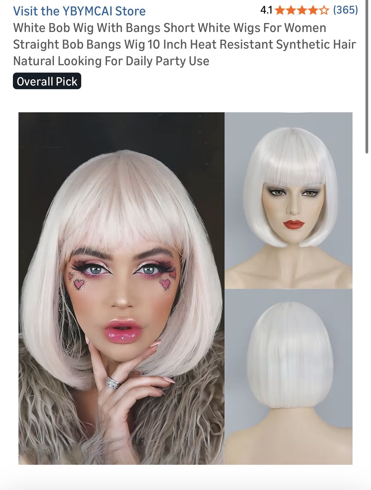 YBYMCAI White Bob Wig With Bangs Short White Wigs For Women Straight Bob Bangs Wig 10 Inch Heat Resistant Synthetic Hair Natural Looking For Daily Party Use 11