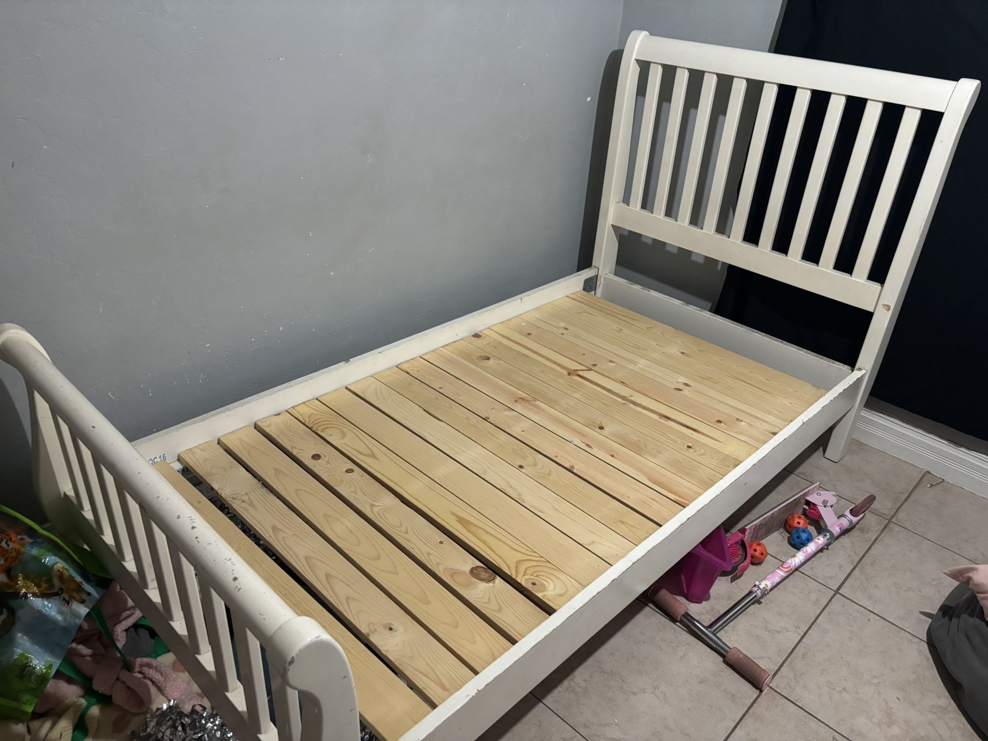 Twin size bed frame White Used (couple of scuffs and scratches)