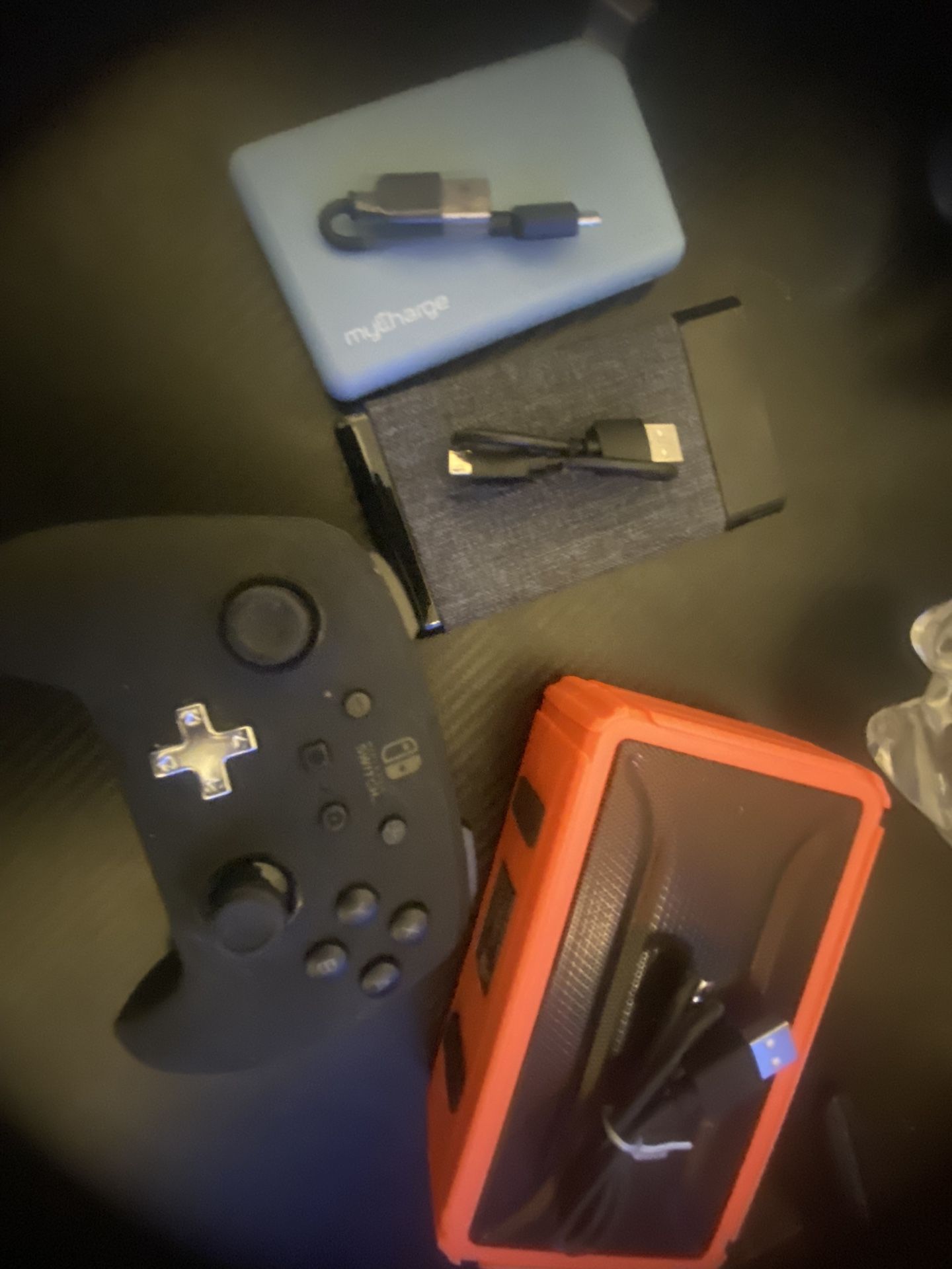 2 portable charges out the pack never used, speaker out the pack never used , Nintendo controller used a little but still working. You can buy separate 15 a peace or a bundle for 60 :)