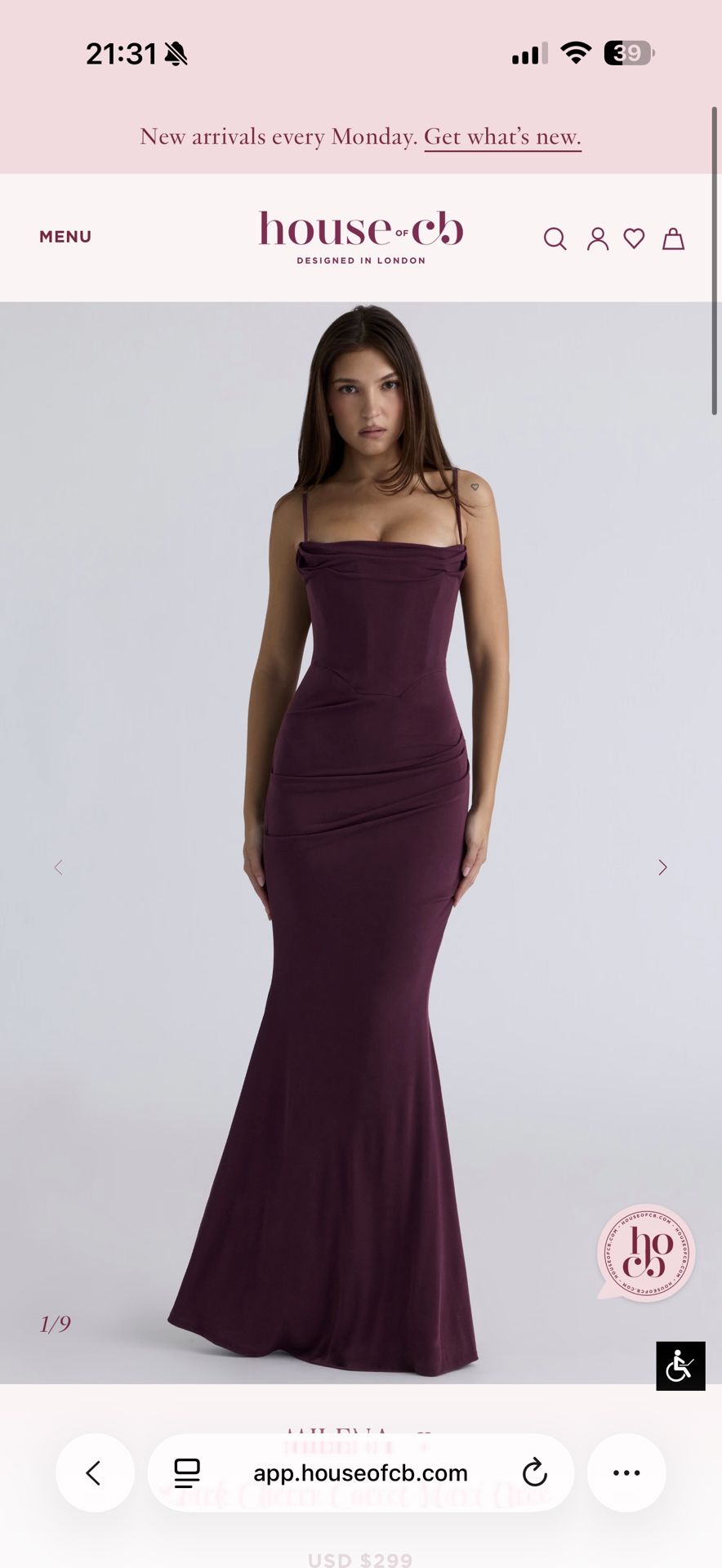 House Of CB Dark Cherry Corset Maxi Gown
