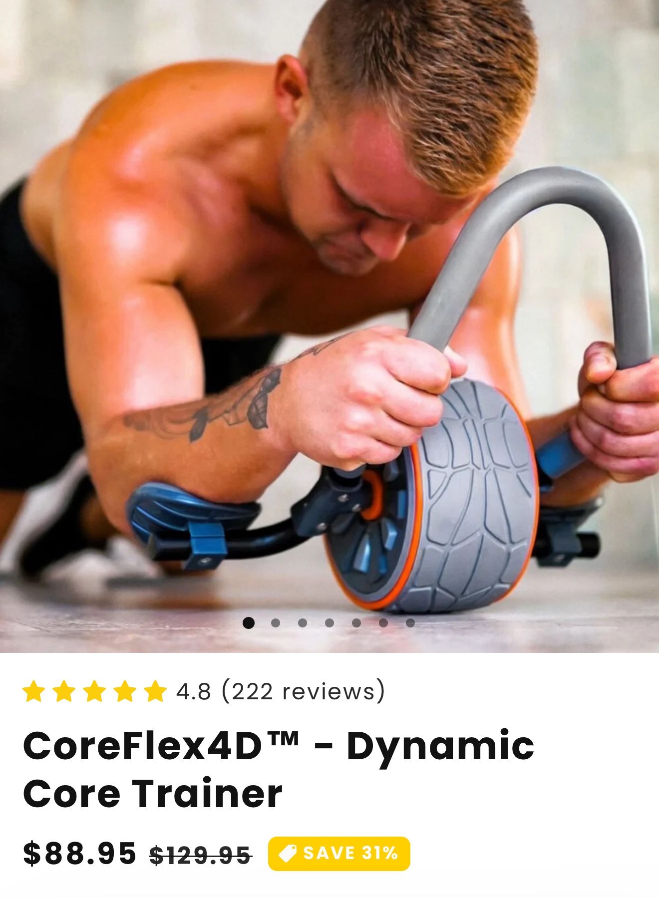 Kick start your fitness journey or add more to your well established routine. The CoreFlex 4D dynamic course trainer is an extra effective workout with constant 360 degree muscle activation. It eliminates strain on wrists, shoulders and back that normal planks and crunches cause. It’s suitable for all fitness levels - super charge your abs and core workouts!