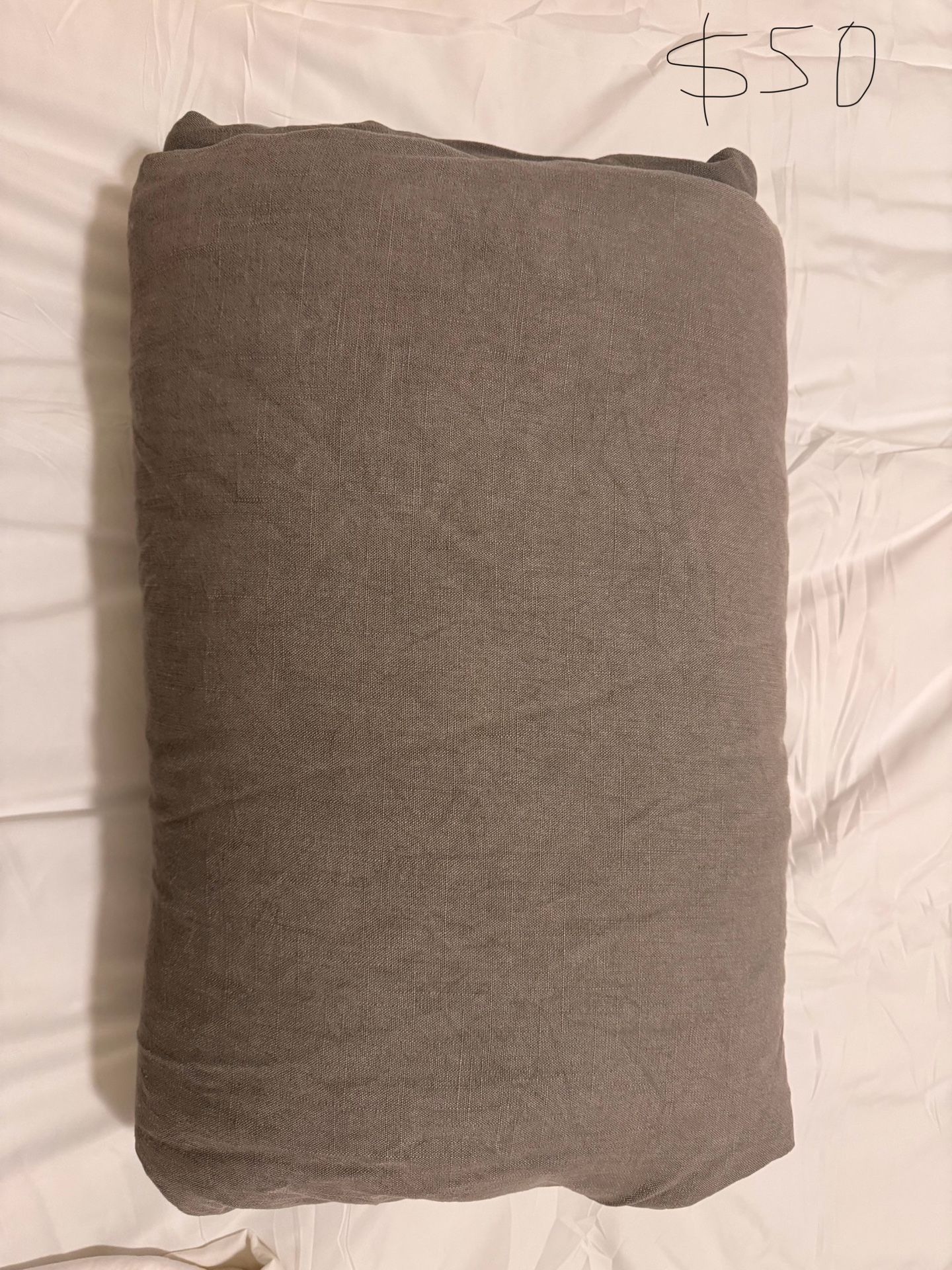 Prices in pictures and description listed in the order of the pictures: Casaluna comforter gray for queen Comforter white/gray for twin Casaluna pillowcases gray Queen gray sheet set with pillow cases Green sheet for queen Gray sheet for twin(has a stain) Box spring cover for queen Blue curtain single