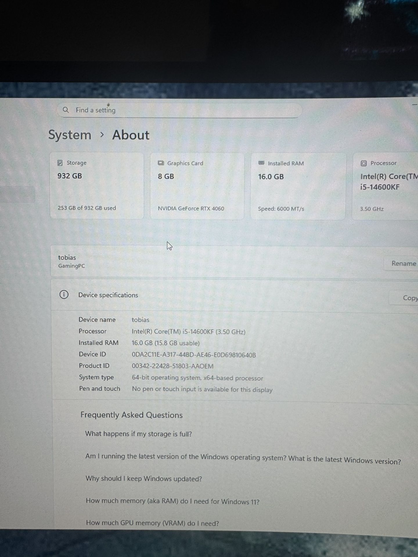 Barely used perfect condition like new I have a PS5 I play on now No upgrades added everything is as is outta the box Graphics card - Nvidia GeForce RTX 4060 RAM-16 GB Processor-Intel i5-14600KF Liquid cooling