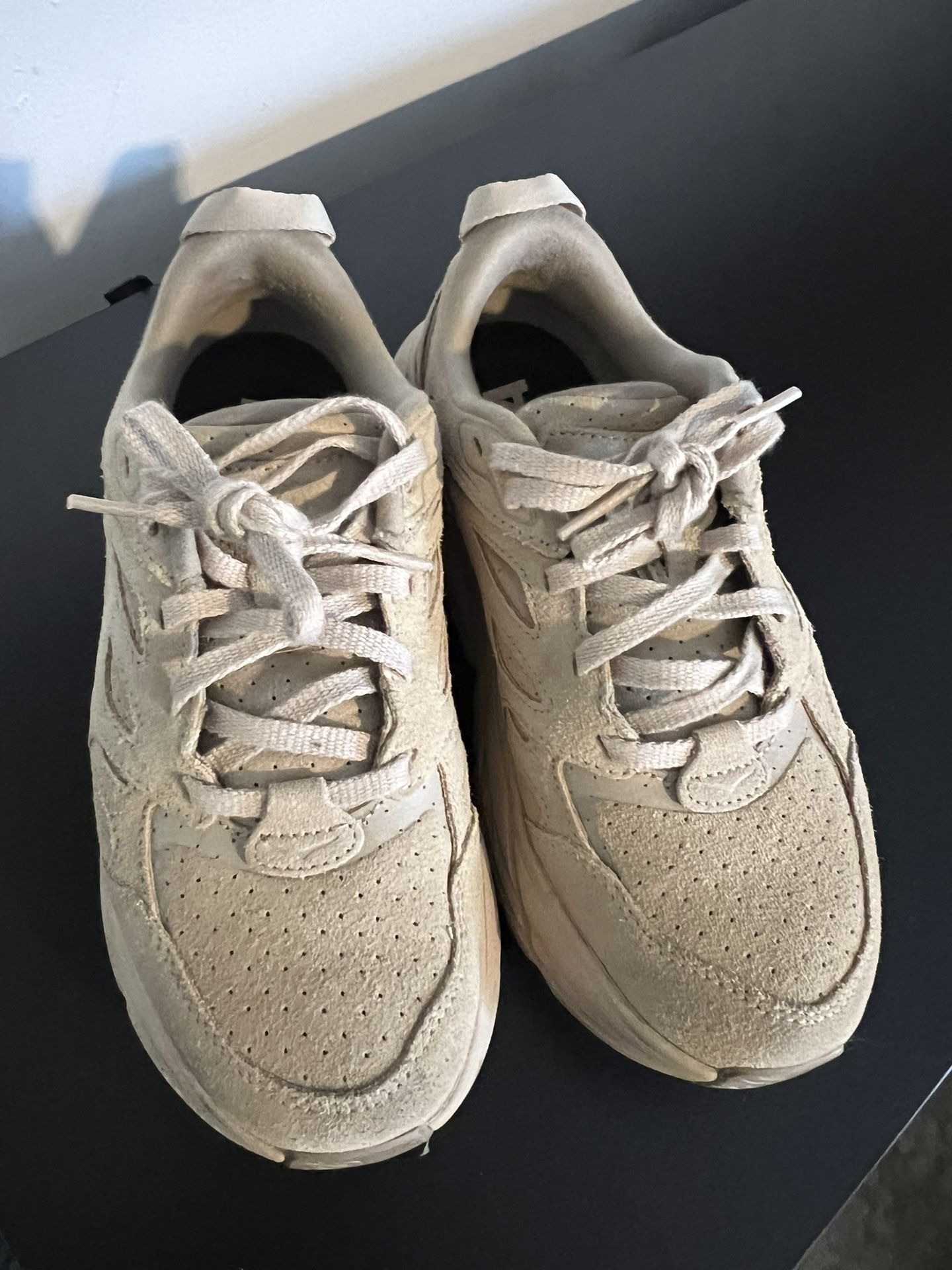 Hoka Clifton L x Free People collab Sneakers Suede tan color Size: 6.5 Worn a couple times my foot grew after pregnancy sadly they don’t fit anymore In great condition Hablo español