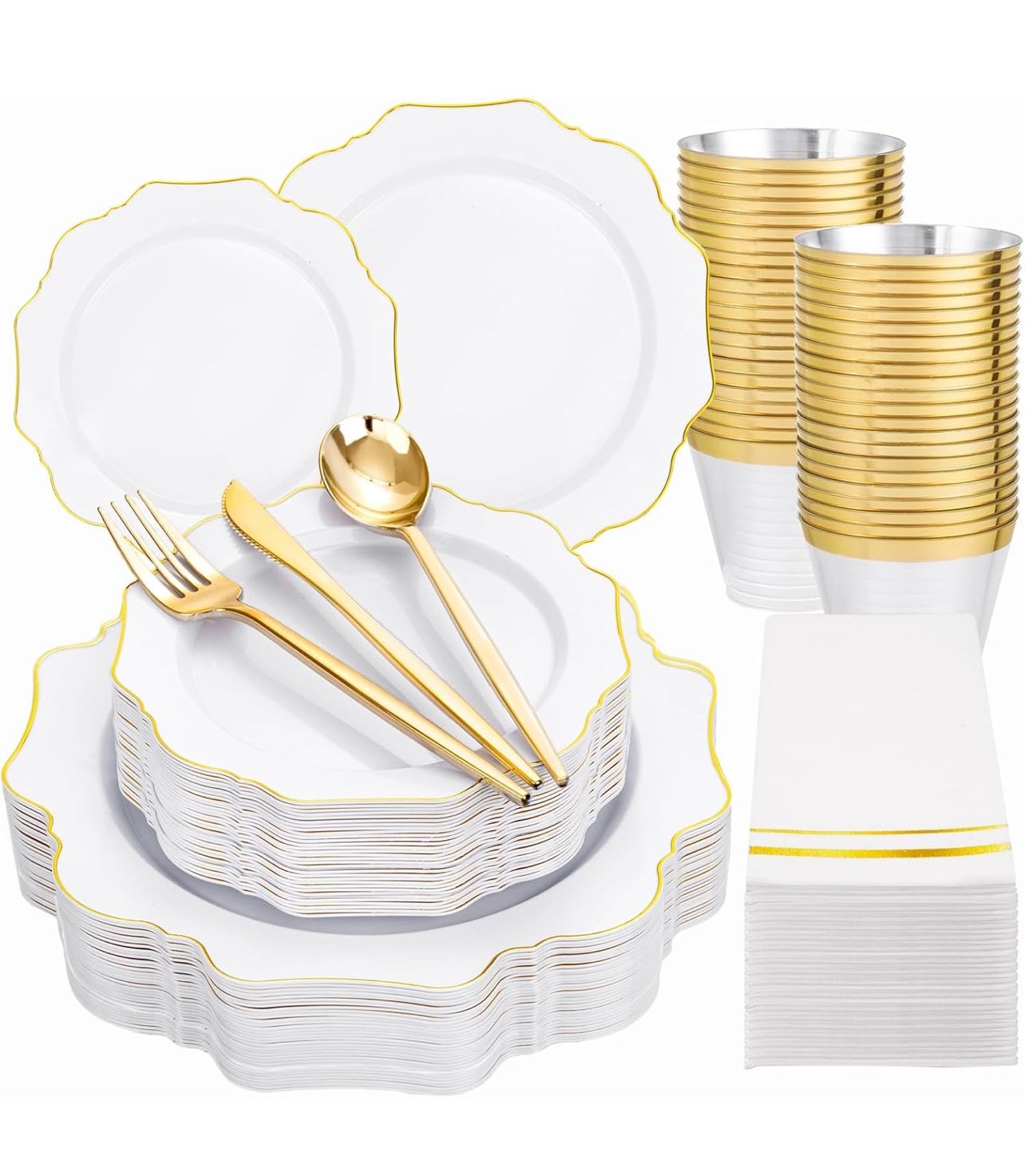 175Pcs Gold Plates Disposable - White and Gold Plastic Plates for 25guest