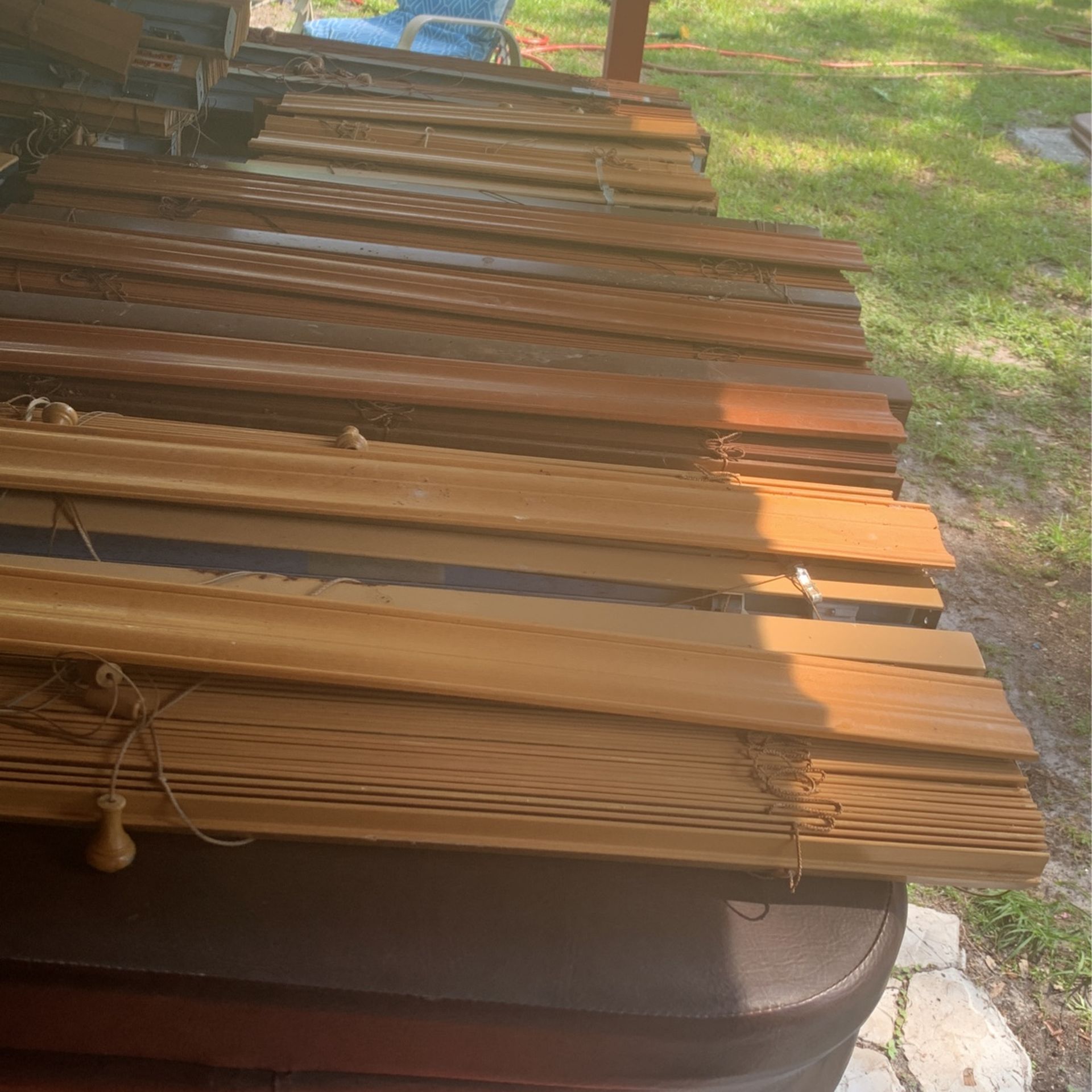 Different sizes and color , use vertical blinds good shape. Two - 72 “ , five - 22.5” , 13 - 34.5
