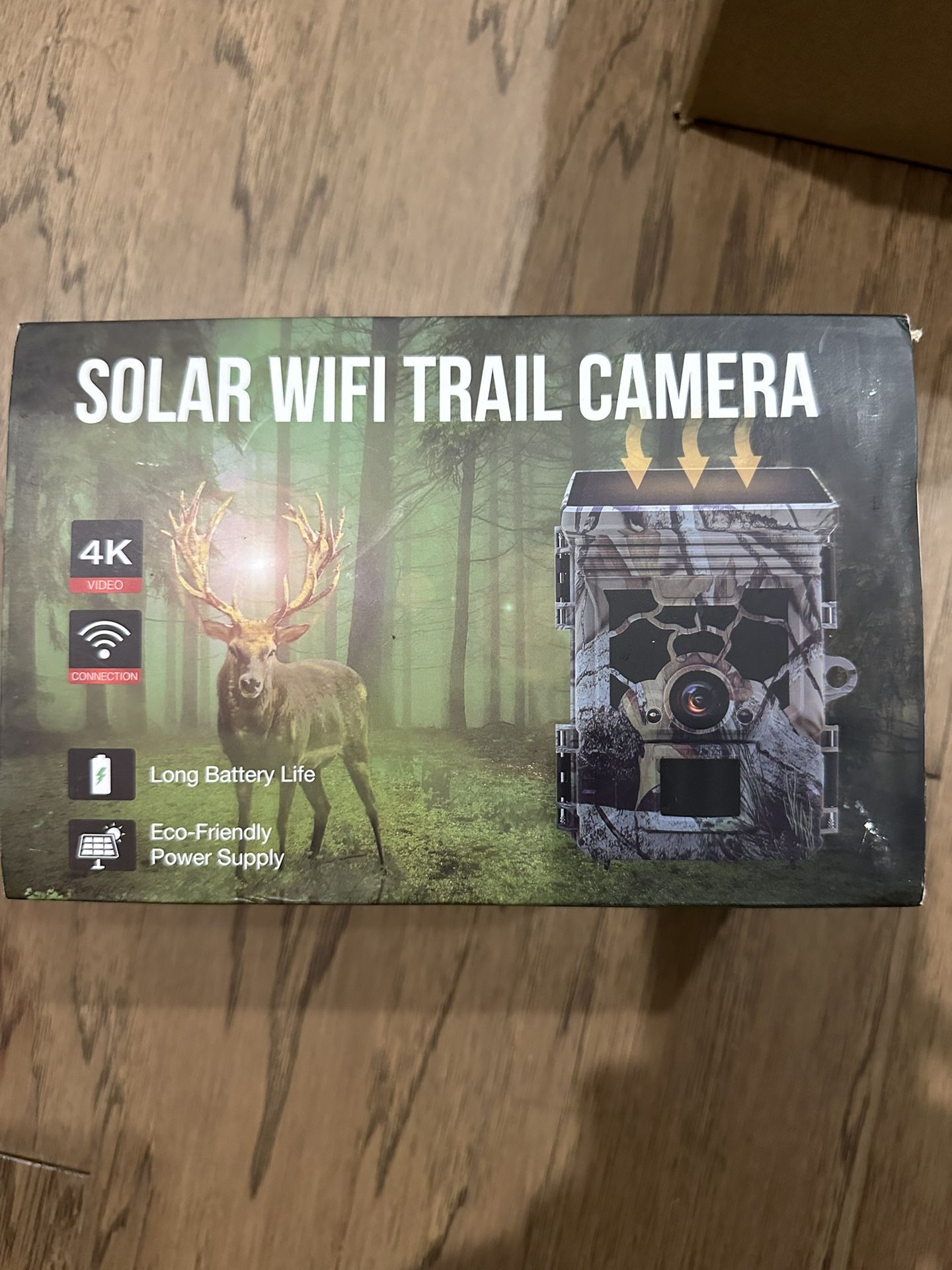 Brand new, never opened, never used. Trail Camera Starlight Night Vision, Solar Powered Dual Lens 60MP 4K 30FPS WiFi Game Camera, Solar Trail Cameras with Night Vision Motion Activated Waterproof, Loop Recording for Wildlife Monitoring