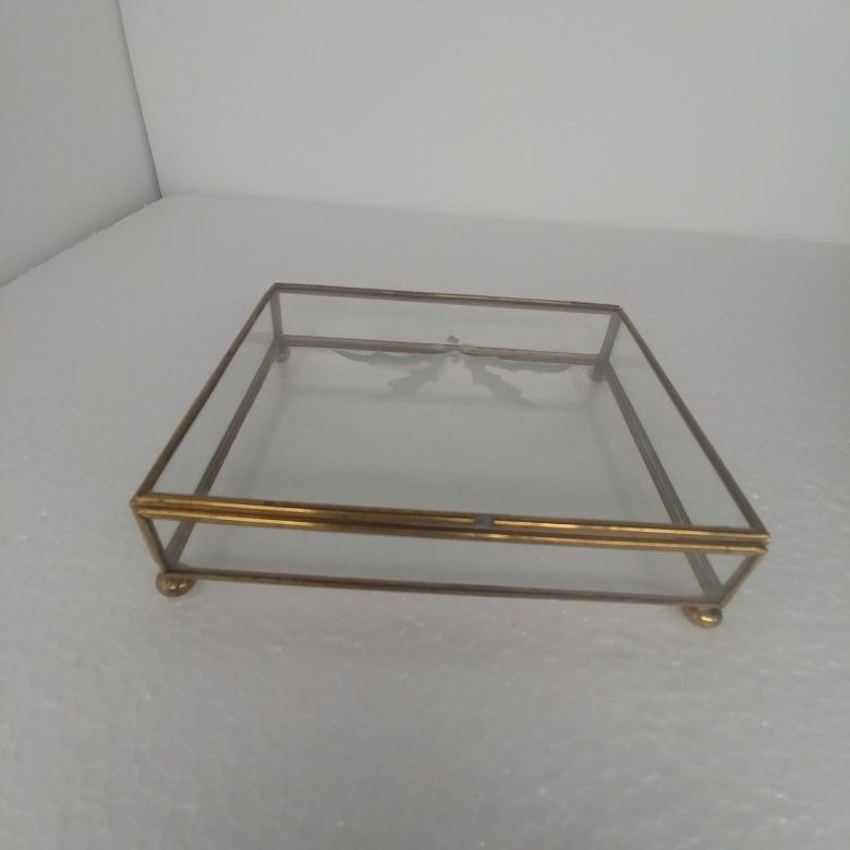 Precious Things Vintage brass & glass lidded, footed Keepsake Box