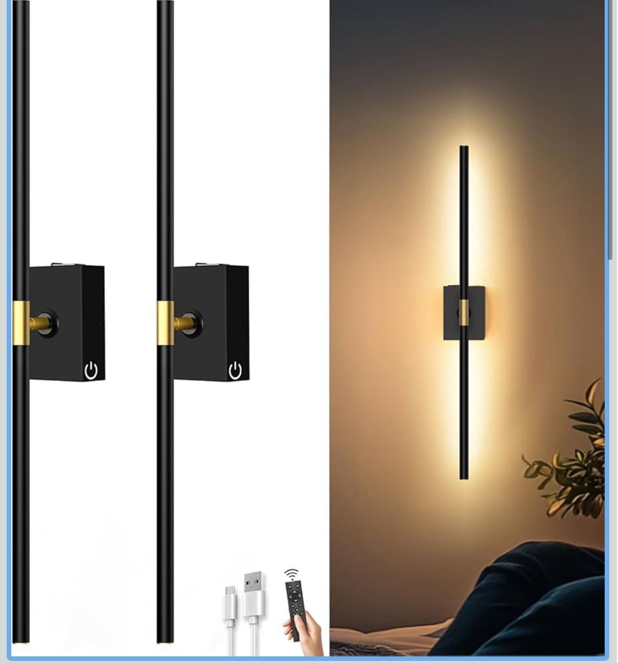 iThird Battery Operated Wall Sconces Set of 2: 10000mAh Rechargeable Wall Lights with Remote Control, 360° Rotate Wireless Wall Scone Decor for TV/Mir