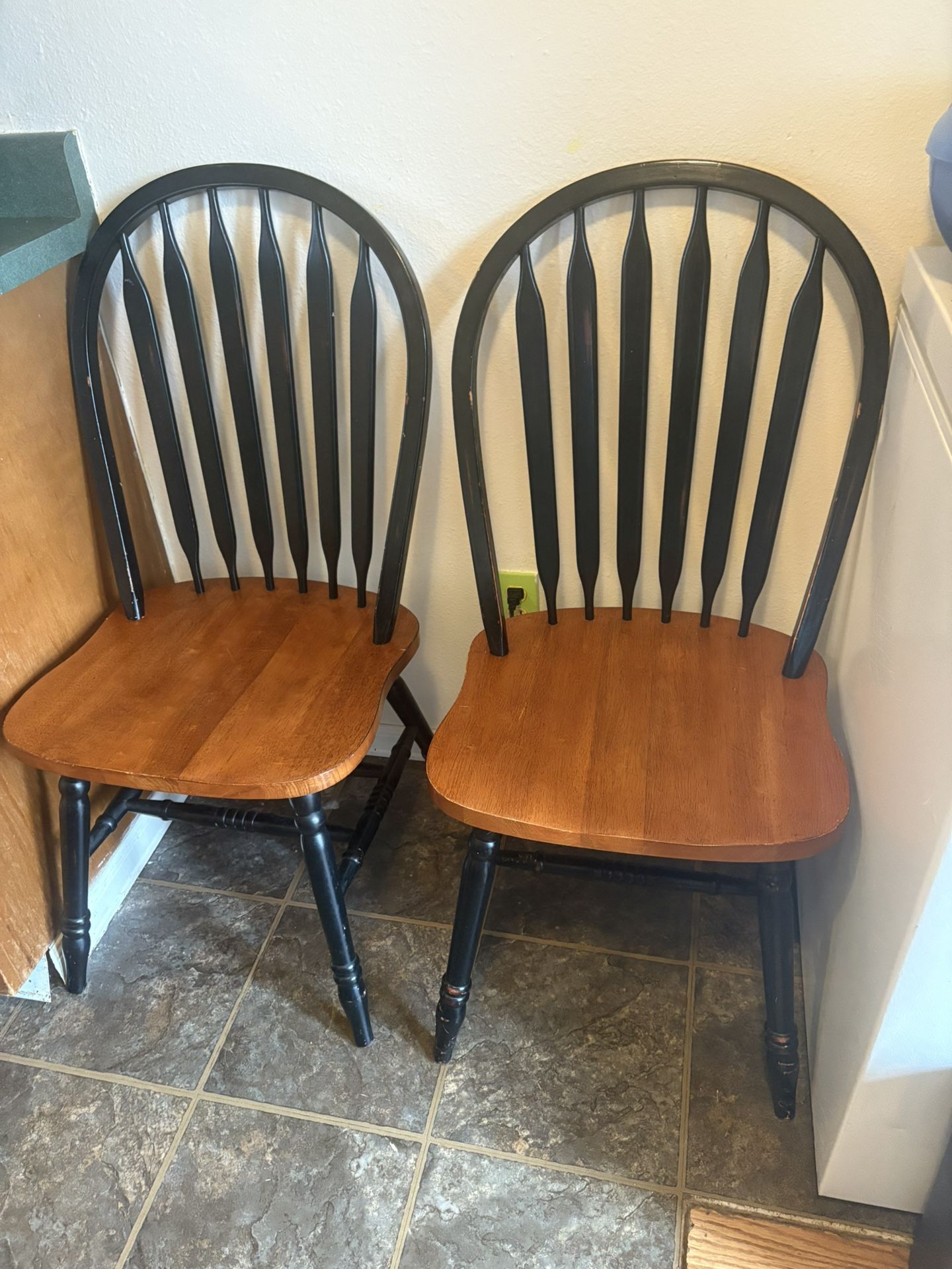 Round table with 4 chairs all in great shape. The table has leafs that you can fold down are keep them up